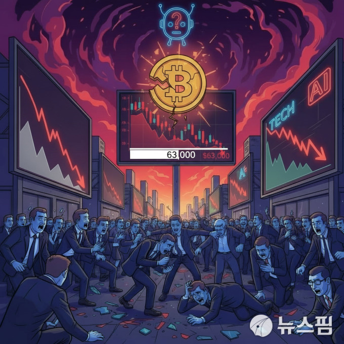 [시드니=뉴스핌] 권지언 특파원 = 비트코인 가격이 일시 6만 3000달러 아래로 급락하며 글로벌 금융시장 공포감이 확산되고 있다. 은·금과 소프트웨어 주식까지 동반 하락하며, 디지털 자산 중심의 시장에 '크립토 아포칼립스'의 그림자가 드리워지는 모습이다.