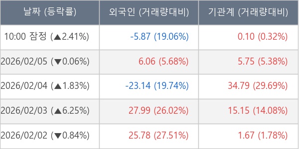 [표] 주요 기관별 순매매량 (단위 만주)