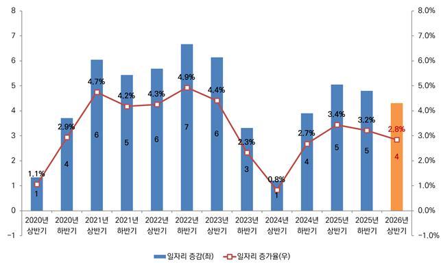 한국고용정보원과 한국산업기술진흥원은 '2026년 상반기 주요 업종의 일자리 전망'을 6일 발표했다.