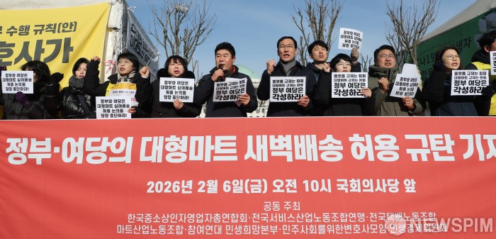 전호일 민주노총 대변인은 "쿠팡 독주를 막기 위해 대형마트 새벽 배송을 허용하는 건 본질이 외도됐다"며 "정부는 야간 노동을 줄이고 온라인 플랫폼 규제 방안에 더 중심을 둬야 한다"고 강조했다.
