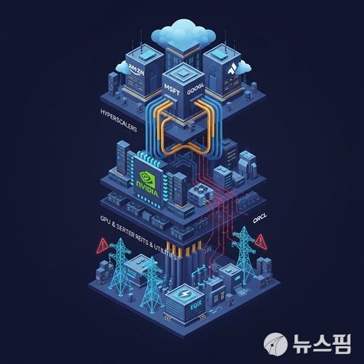 ◆ 데이터센터·전력 인프라, 공공재와 투자수익률이 겹치는 하단부 = 하단부에는 코로케이션과 하이퍼스케일 데이터센터 리츠, 전력 및 송전 인프라 기업, 지방정부와 규제 당국이 얽힌 인프라 층이 자리 잡고 있다.