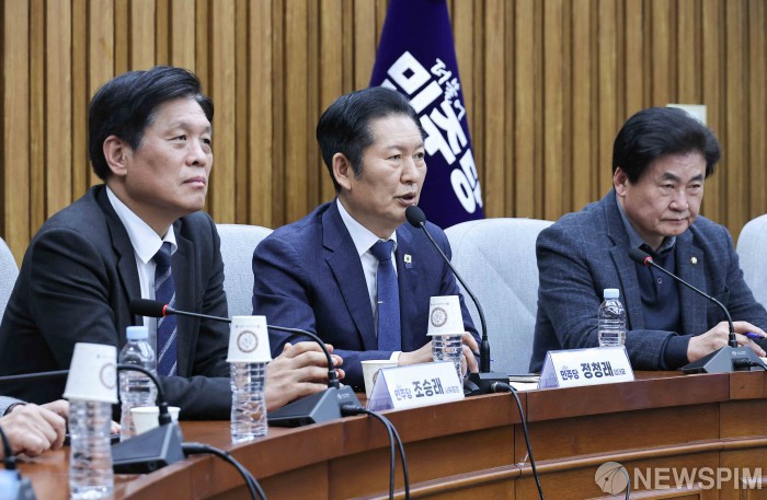 [서울=뉴스핌] 윤창빈 기자 = 정청래 더불어민주당 대표가 6일 서울 여의도 국회에서 열린 조국혁신당 합당 관련 3선의원 간담회에서 모두발언을 하고 있다. 2026.02.06 pangbin@newspim.com