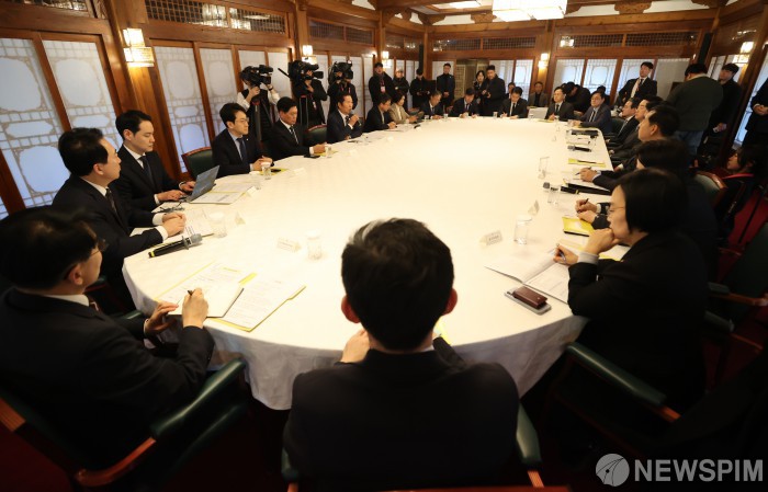 [서울=뉴스핌] 정일구 기자 = 정청래 더불어민주당 대표가 8일 오후 서울 종로구 국무총리공관에서 열린 제6차 고위당정협의회에서 발언하고 있다. 2026.02.08 mironj19@newspim.com