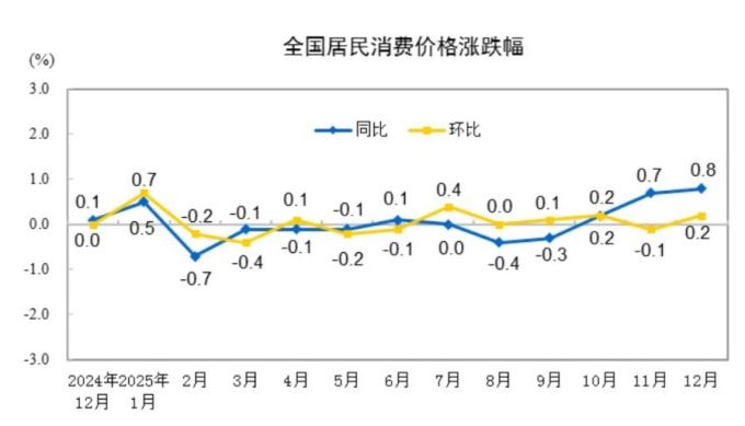 ② 2025년 12월 CPI는 전년 동기 대비 0.8% 상승하며 시장 전망치에 부합한 동시에 34개월래 최고치를 기록했다. 지난해 3분기까지 마이너스를 기록한 중국 CPI는 10월 국경절과 중추절(추석) 연휴를 맞아 상승 전환한 뒤 3개월 연속 오름세를 이어가며 디플레이션 우려가 다소 완화됐다. 반면, 내수부진과 수출감소 여파가 지속되면서 PPI는 전년 동기 대비 1.9% 하락, 2022년 10월부터 마이너스를 기록 중이다.