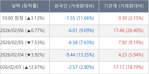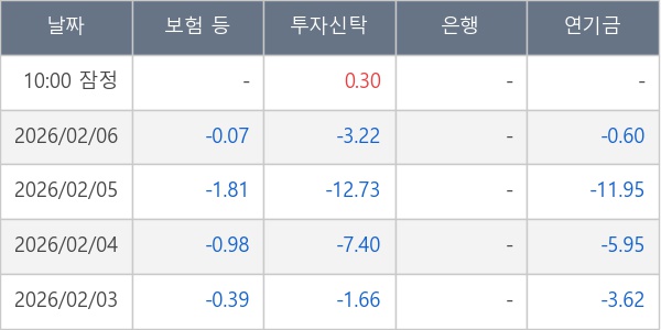 [표] 주요 기관별 순매매량 (단위 만주)