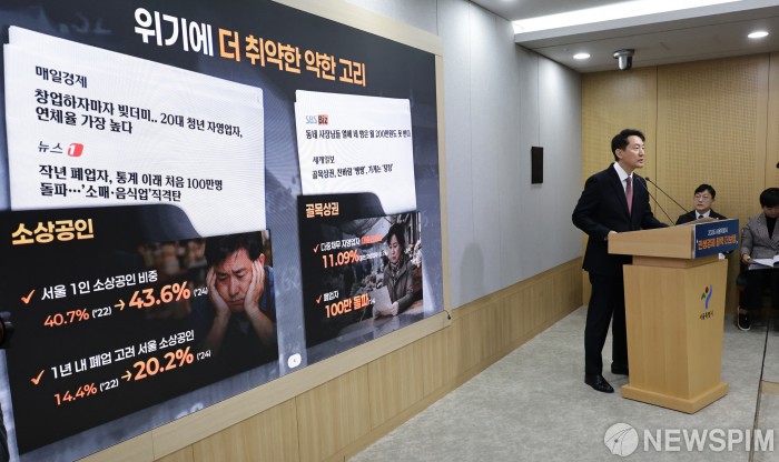 [서울=뉴스핌] 양윤모 기자 = 오세훈 서울시장이 9일 오전 서울시청 브리핑룸에서 개최된 '2026 민생경제 활력 더보탬'기자설명회에 참석해 발표를 하고 있다. 서울시는 총 2조7906억원을 지원해 소상공인, 골목 상권, 소비자, 취약 노동자 등 경제 불황 속 가장 먼저 위기에 직면하는 4대 계층에 대한 활력 회복을 주요 내용으로 하는 '2026년 민생경제 활력 더보탬'을 발표했다. 2026.02.09 yym58@newspim.com