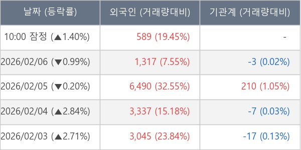 [표] 외국인ㆍ기관 순매매량 (단위 주)