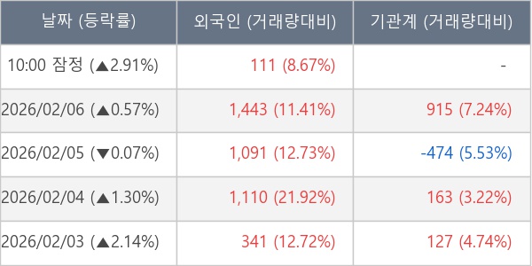 [표] 외국인ㆍ기관 순매매량 (단위 주)