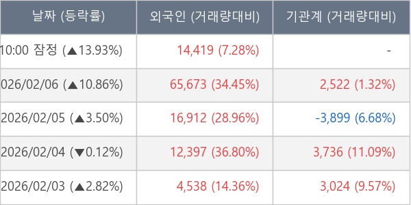 [표] 외국인ㆍ기관 순매매량 (단위 주)