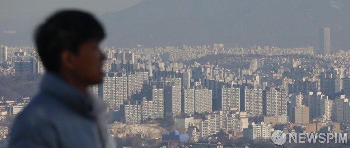 [서울=뉴스핌] 류기찬 기자 = 39세 이하 가구주 무주택 가구가 역대 최대 수준으로 늘었다. 지난 8일 국가통계포털(KOSIS)에 따르면 2024년 기준 전국 무주택 가구는 361만2321가구이며, 이 가운데 서울은 99만2856가구로 역시 최대치를 기록했다. 수도권 집중과 높은 집값, 제한적인 공급이 겹치며 청년층의 주택 진입 장벽이 높아지고 있다는 분석이다. 사진은 9일 오전 서울 남산에서 바라본 서울 시내 아파트 단지. 2026.02.09 ryuchan0925@newspim.com