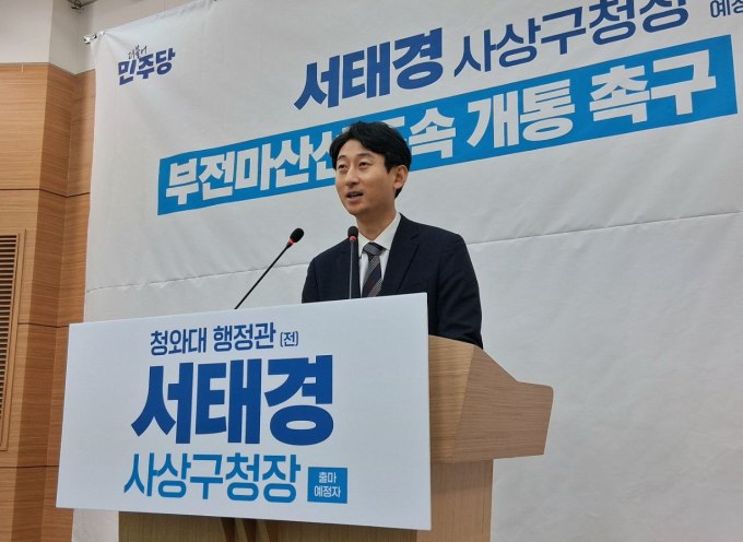 [부산=뉴스핌] 남동현 기자 = 더불어민주당 서태경 부산 사상구청장 출마예정자가 부전~마산 복선전철의 조속 개통을 촉구했다.