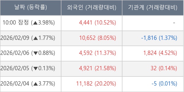[서울=뉴스핌] 로보뉴스 = 10일 10시 15분 현재 DSR제강(069730)은 전일 대비 3.98% (현재가 4,180원) 상승했고, 외국인이 최근 6일 연속 순매수(누적 39,064주, 잠정) 행진을 하고 있다.