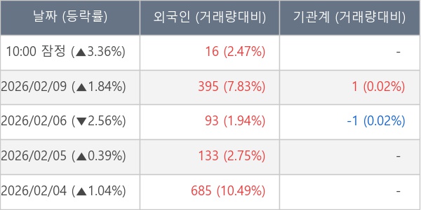 [표] 외국인ㆍ기관 순매매량 (단위 주)