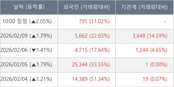 [표] 외국인ㆍ기관 순매매량 (단위 주)