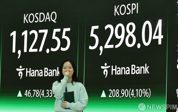 [서울=뉴스핌] 양윤모 기자 = 미국발 훈풍에 힘입어 9일 오후 코스피가 전장 종가보다 208.90 포인트(4.10%) 상승하며 5298.04로, 코스닥은 46.78 포인트(4.33%) 상승한 1127.25 로 거래를 마감한 가운데, 서울 중구 하나은행본점 딜링룸에서 직원들이 업무를 보고 있다. 서울외환시장에서 달러/원 환율은 전장 대비 9.30원 하락한 1460.20원에 주간거래를 마감했다. 2026.02.09 yym58@newspim.com