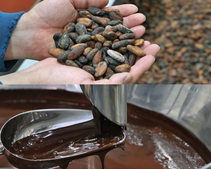 현장에서는 아무런 가공물도 섞지 않은 카카오 100% 매스를 직접 맛볼 수 있었다. 처음에는 강한 쓴맛이 올라왔지만, 곧 고소함이 입안을 가득 채웠다. 카카오 매스는 단단한 카카오 빈을 가열 없이 마이크로 단위까지 분쇄해 만든 액체 형태의 초콜릿이다. 딱딱한 열매를 분쇄만 했음에도 고체가 아닌 액체로 남는 이유는 카카오 열매 속 지방이 충분히 녹아 있기 때문이다.