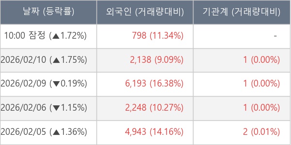 [표] 외국인ㆍ기관 순매매량 (단위 주)