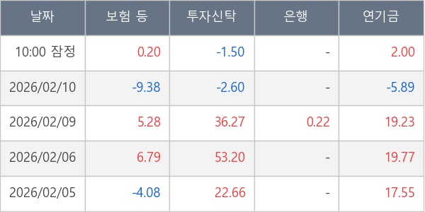 [표] 주요 기관별 순매매량 (단위 만주)