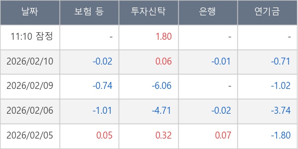 [표] 주요 기관별 순매매량 (단위 만주)