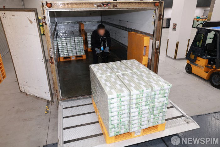 [서울=뉴스핌] 사진공동취재단= 민족 대명절 설을 앞둔 11일 서울 중구 한국은행 본점에서 직원들이 시중은행으로 공급될 설 자금 방출 작업을 하고 있다.2026.02.11 photo@newspim.com