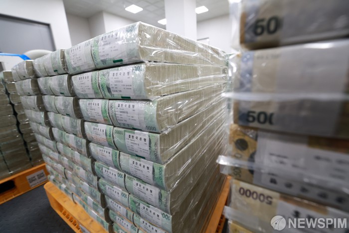 [서울=뉴스핌] 사진공동취재단= 민족 대명절 설을 앞둔 11일 서울 중구 한국은행 본점에서 직원들이 시중은행으로 공급될 설 자금 방출 작업을 하고 있다.2026.02.11 photo@newspim.com