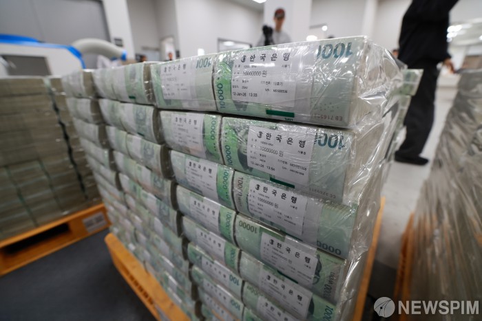[서울=뉴스핌] 사진공동취재단= 민족 대명절 설을 앞둔 11일 서울 중구 한국은행 본점에서 직원들이 시중은행으로 공급될 설 자금 방출 작업을 하고 있다.2026.02.11 photo@newspim.com