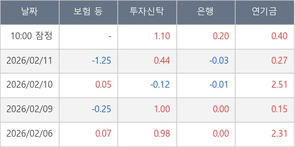 [표] 주요 기관별 순매매량 (단위 만주)