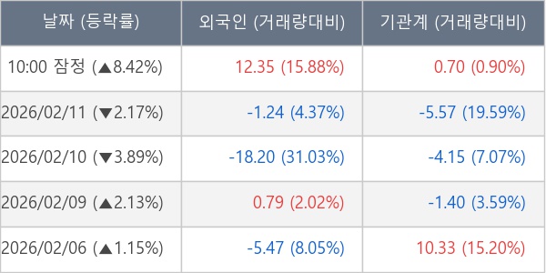 ※ 사모펀드 등 일부 기관의 순매매량은 표시되지 않음