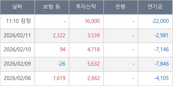 [표] 주요 기관별 순매매량 (단위 주)