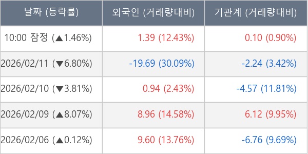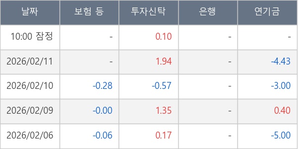 [표] 주요 기관별 순매매량 (단위 만주)