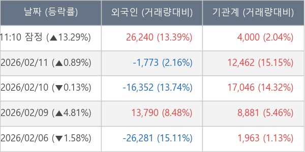 [서울=뉴스핌] 로보뉴스 = 12일 11시 30분 현재 OCI(456040)는 전일 대비 13.29% (현재가 89,500원) 상승했고, 기관이 최근 5일 연속 순매수(누적 44,352주, 잠정) 행진을 하고 있다.