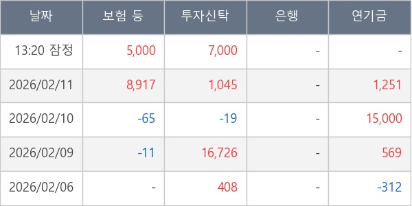 [표] 주요 기관별 순매매량 (단위 주)