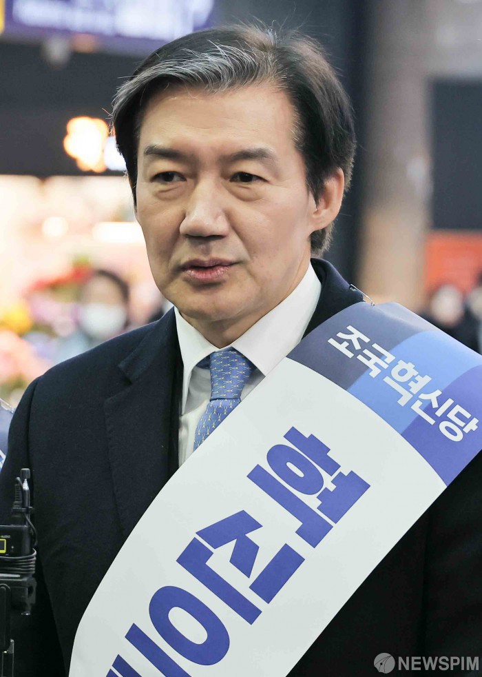 [서울=뉴스핌] 윤창빈 기자 = 조국 조국혁신당 대표가 13일 오전 서울 용산구 용산역에서 시민들에게 설 귀성인사를 하기 전 인사말을 하고 있다. 2026.02.13 pangbin@newspim.com