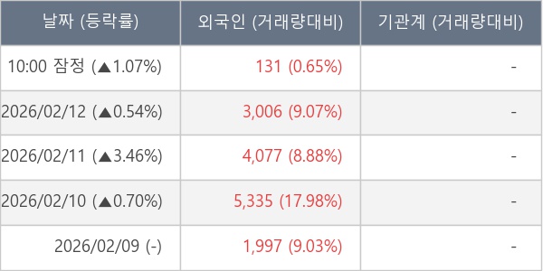 [표] 외국인ㆍ기관 순매매량 (단위 주)