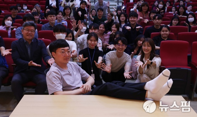 김선태 주무관이 2023년 5월 대전 동구애서 '공공기관 홍보에 대한 강연을 진행한 후 직원들과 함께 포즈를 취하고 있다.  [사진=뉴스핌DB]