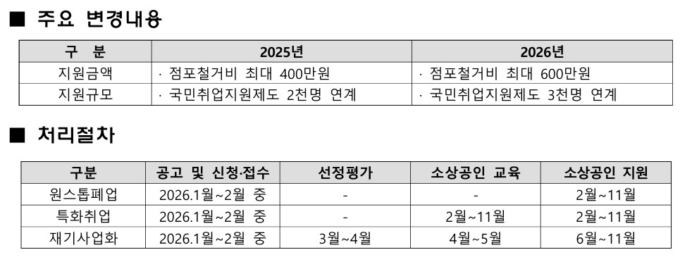 폐업 지원에는 사업 정리 컨설팅과 법률 자문, 채무 조정 등이 포함된다. 점포 철거비와 원상복구 비용으로 최대 600만원을 지원받을 수 있다.