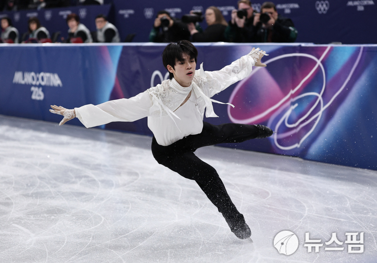 [밀라노 로이터=뉴스핌] 피겨 차준환이 14일 이탈리아 밀라노 아이스 스케이팅 아레나에서 열린 2026 밀라노·코르티나담페초 동계 올림픽 피겨스케이팅 남자 싱글 프리스케이팅에 출전해 연기를 펼치고 있다. 2026.02.14 wcn05002@newspim.com