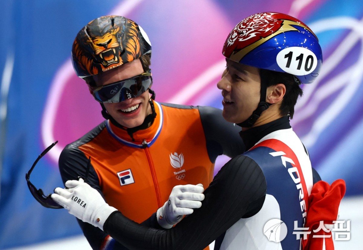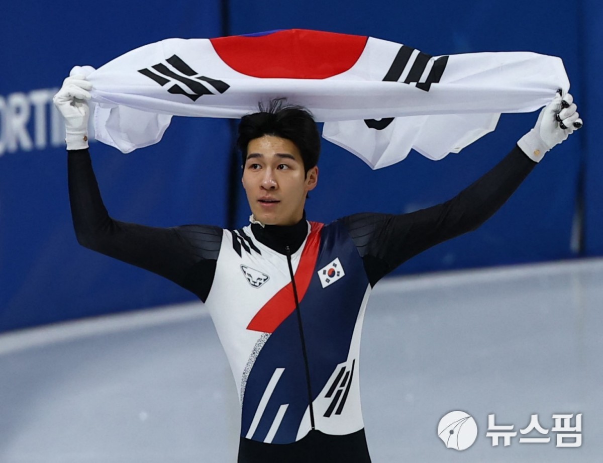 [서울=뉴스핌] 박상욱 기자 =한국 남자 쇼트트랙 베테랑 황대헌이 노련한 경기 운영으로 막판 추월쇼를 펼쳐 은메달을 목에 걸었다.