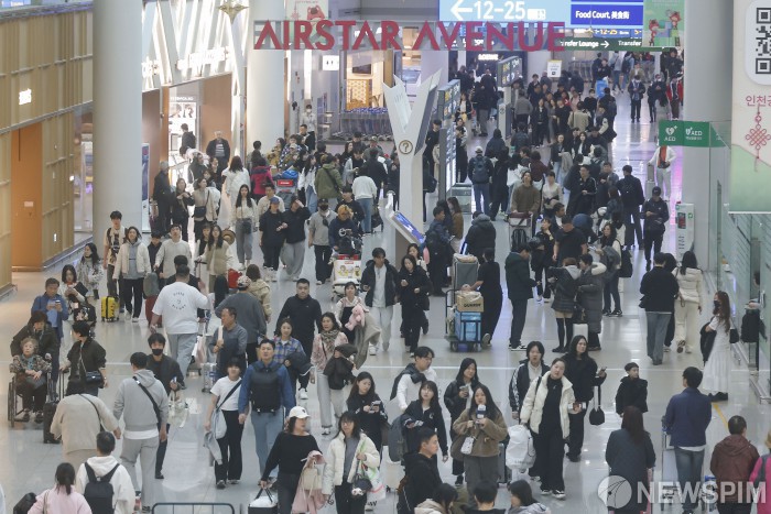 [영종도=뉴스핌] 류기찬 기자 = 설 연휴를 맞이한 15일 오전 인천국제공항 제1여객터미널 면세구역이 여행객들로 북적이고 있다. 2026.02.15 ryuchan0925@newspim.com