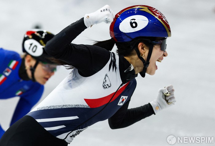 [밀라노=로이터뉴스핌] 밀라노 코르티나 2026 올림픽에 출전한 쇼트트랙 대한민국 김길리 선수가 지난 18일 이탈리아 밀라노 아이스 스케이팅 아레나에서 열린 3000m 계주 결승에서 금메달을 획득하고 기뻐하고 있다. 2026.02.19 photo@newspim.com