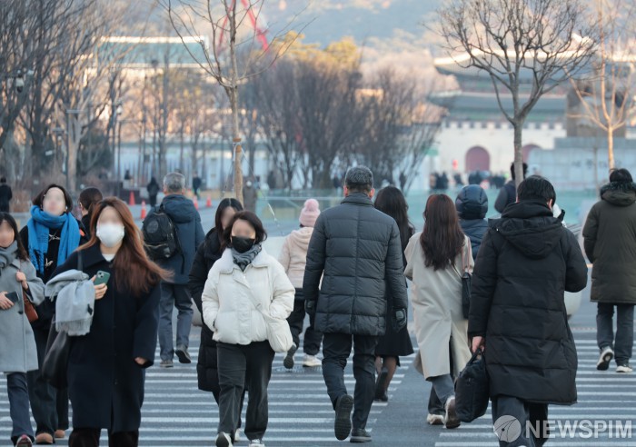 [서울=뉴스핌] 이길동 기자 = 설 연휴가 끝난 19일 오전 서울 종로구 광화문 사거리에서 시민들이 출근길을 서두르고 있다. 2026.02.19 gdlee@newspim.com