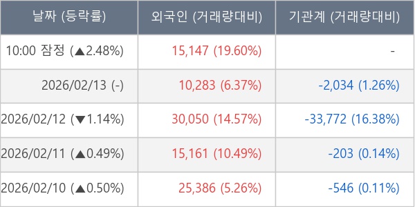 [표] 외국인ㆍ기관 순매매량 (단위 주)