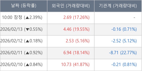 [표] 외국인ㆍ기관 순매매량 (단위 만주)