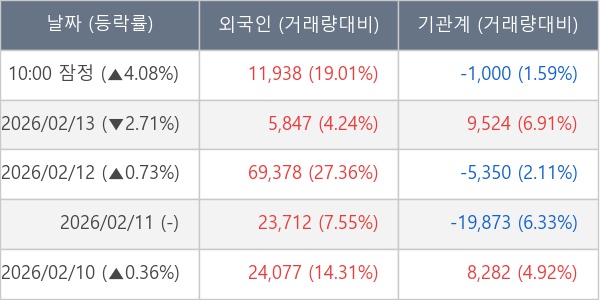 [표] 외국인ㆍ기관 순매매량 (단위 주)