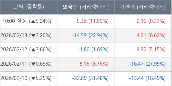 [표] 외국인ㆍ기관 순매매량 (단위 만주)