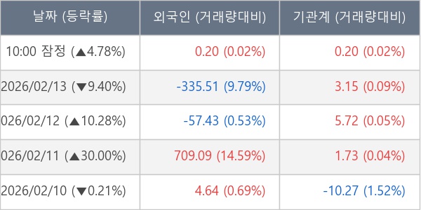 [표] 주요 기관별 순매매량 (단위 만주)
