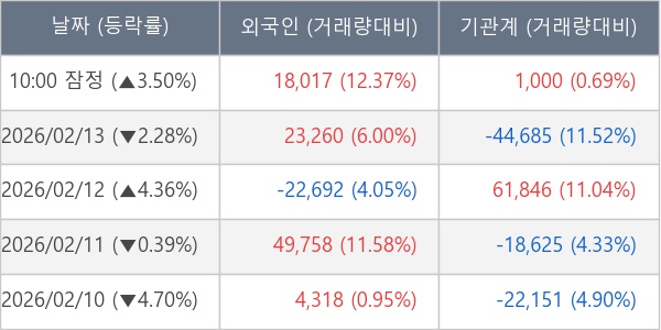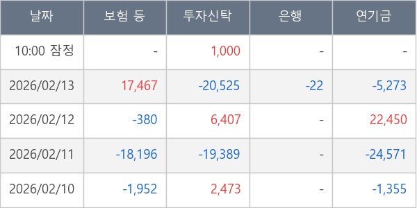 [표] 주요 기관별 순매매량 (단위 주)