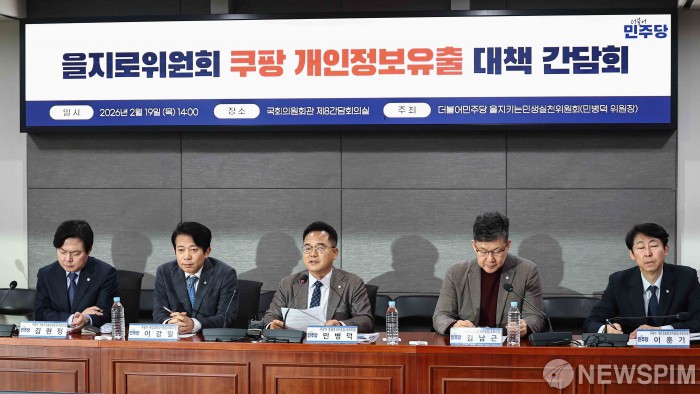 [서울=뉴스핌] 윤창빈 기자 = 민병덕 더불어민주당 을지로위원장이 19일 서울 여의도 국회 의원회관에서 열린 쿠팡 개인정보유출' 대책 간담회에서 모두발언을 하고 있다. 2026.02.19 pangbin@newspim.com