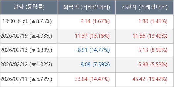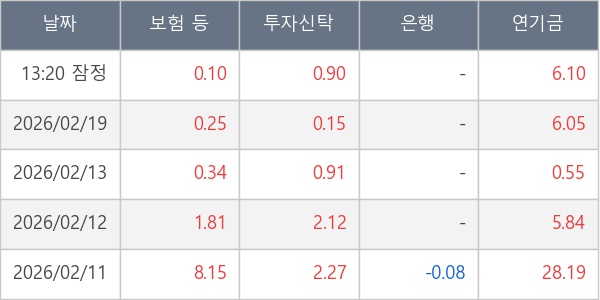 [표] 주요 기관별 순매매량 (단위 만주)