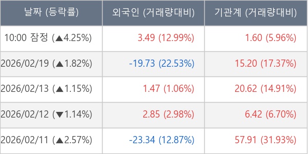 [표] 주요 기관별 순매매량 (단위 만주)